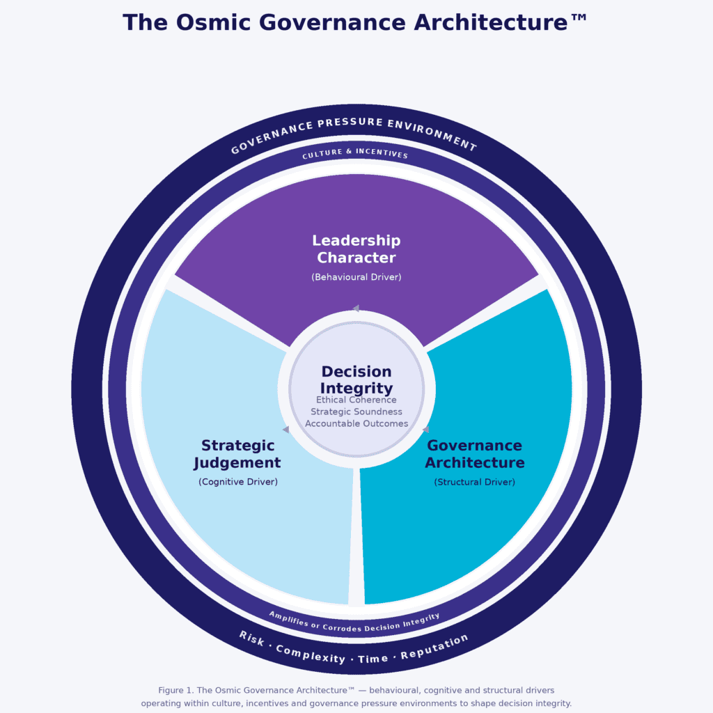The Osmic Governance Architecture™ asks whether those mechanisms actually function under the conditions boards face in practice.